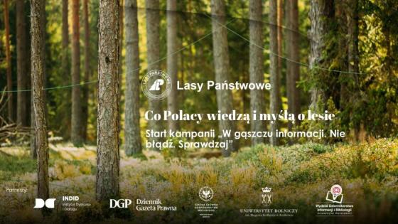 Prawie 70% Polaków jest przekonanych, że powierzchnia lasów w Polsce maleje – wynika z badania PBS zrealizowanego na zlecenie Lasów Państwowych. 40% respondentów nie zgadza się ze stwierdzeniem lub nie wie, że w miejsce każdego wyciętego drzewa leśnicy sadzą co najmniej kilka nowych. A 21% badanych uważa, że drewno można pozyskać nie wycinając drzew. To efekty mitów i dezinformacji krążących w przestrzeni publicznej. By walczyć z fake newsami Lasy Państwowe i Instytut Dyskursu i Dialogu, fundacja zajmująca się m. in. fact checkingiem, ruszają z kampanią o dezinformacji w środowisku przyrodniczym: „W gąszczu informacji. Nie błądź. Sprawdzaj”.