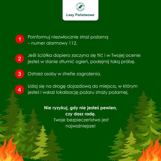 Cały czas leśnicy monitorują sytuację, działają punkty dyspozycyjno-alarmowe, również służby terenowe wyczulone są na tę sytuację w gotowości do szybkiej reakcji w razie pożaru.