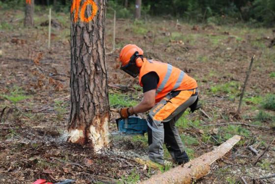 - Ścinka drzew pod nadzorem komisji, która na bieżąco analizowała parametry pni i udzielała instruktarzu